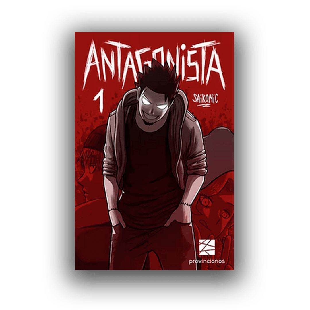 Después de haber ganado el Tezuka Award 100° Aniversario con Armados, Saikomic llegó para quedarse. Y no para solazarse en sus laureles, sino para sacudirnos con una historia que, siguiendo todos los patrones de un manga clásico de pelea, construye un mundo original y filoso. Tago reúne a los mejores criminales en una organización para cumplir sus objetivos. En un mundo regido por el brillo del neón, poder que dota de superhabilidades a los personajes, y en una sociedad custodiada por los Vigilantes, Antagonista irá contra todo y todos para imponer su utopía y acabar la crueldad con crueldad.