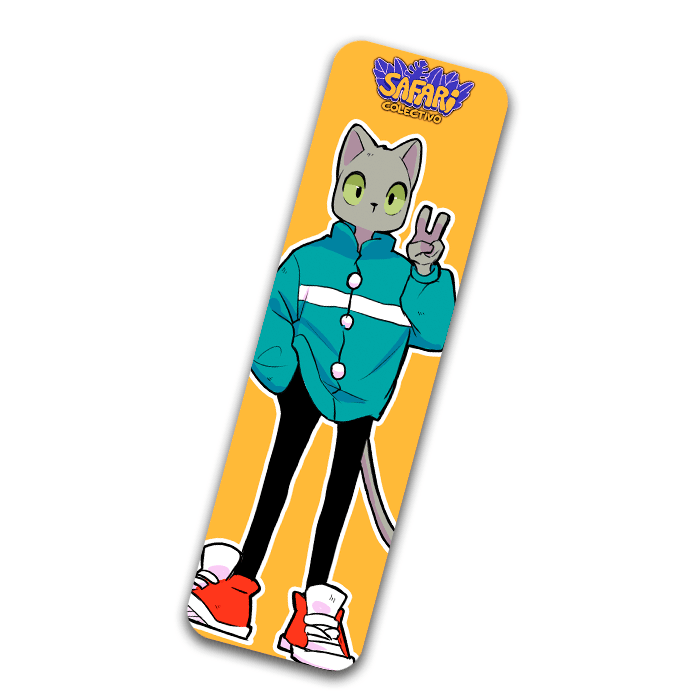 Marca páginas ilustrado por PaulinaaPC, disponible en acabado holográfico.