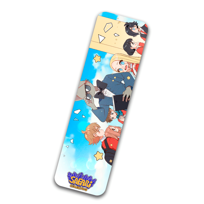 Marca páginas ilustrado por PaulinaaPC, disponible en acabado holográfico.