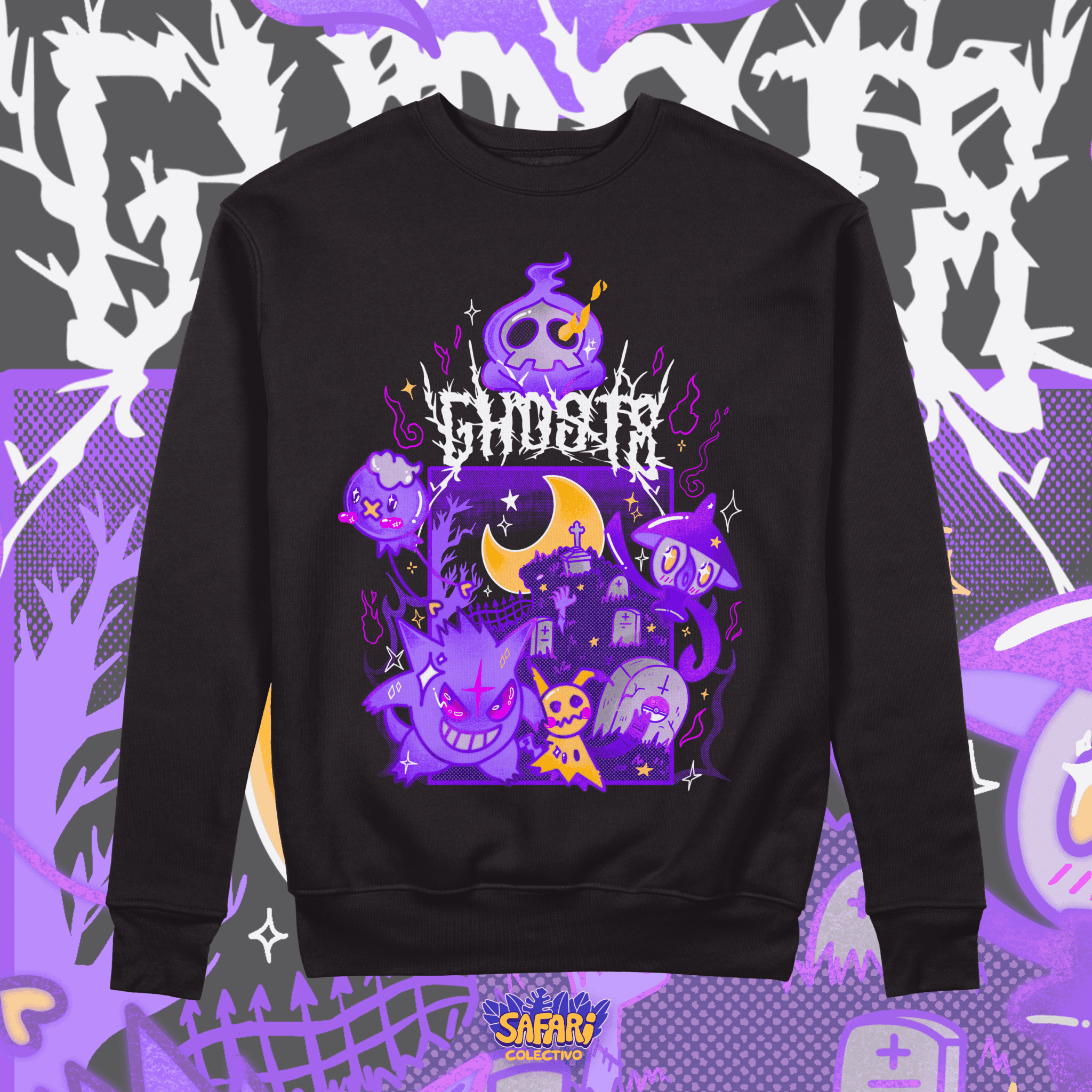 Diseño estampado en impresión directa sobre poleron negro soft Cotton
