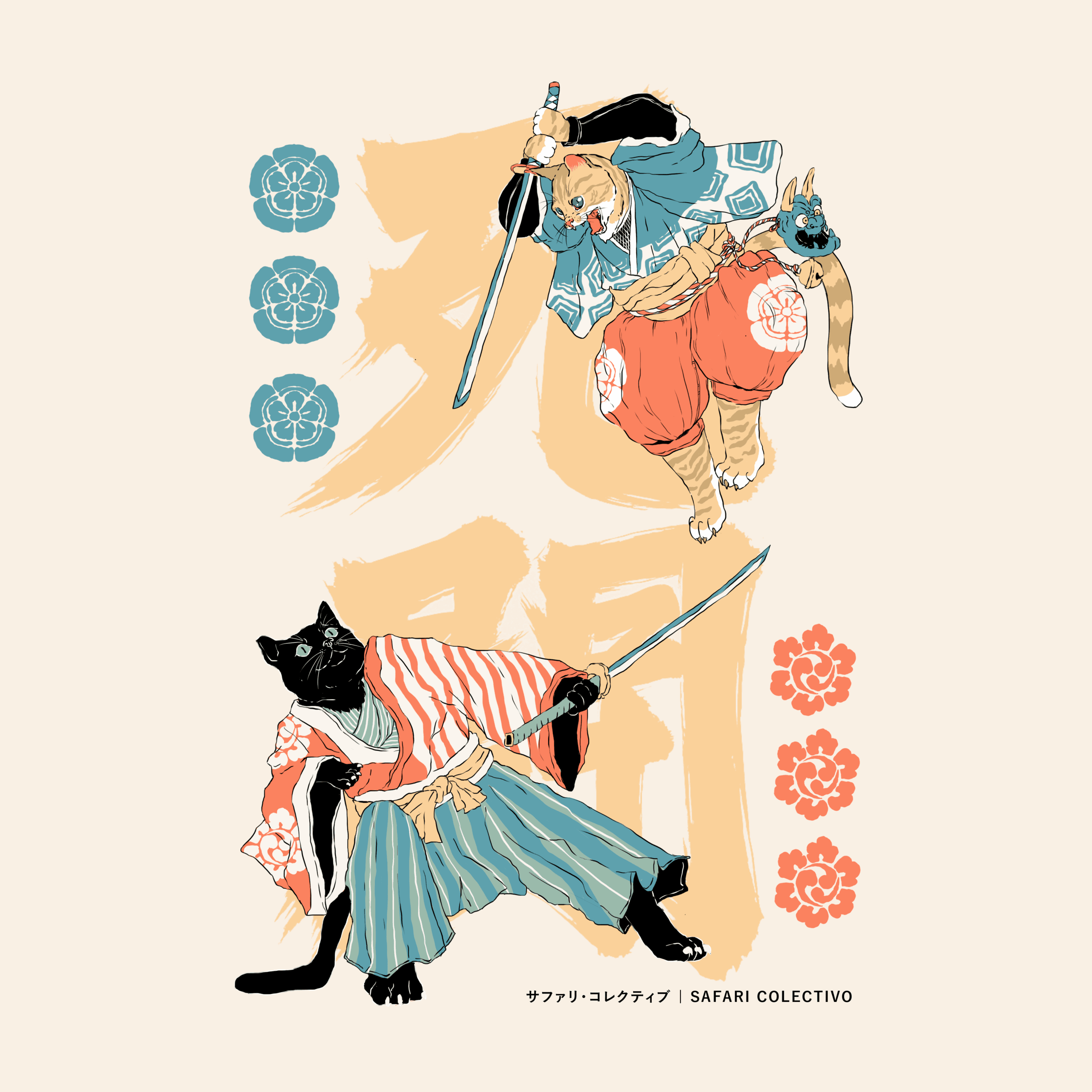Diseño exclusivo: Gatos entre juguetes tradicionales japoneses